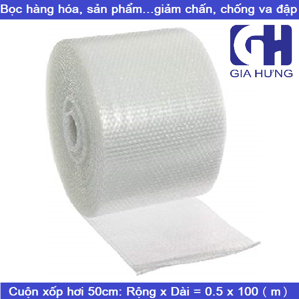Cuộn rộng 50cm chiều dài 100m : là một loại cuộn khổ nhỏ, phù hợp với nhu cầu đóng gói các sản phẩm có kích thước lớn nhỏ như các cửa hàng buôn bán đồng hồ, mỹ phẩm, điện thoại, ốp lưng, ví da, túi sách...