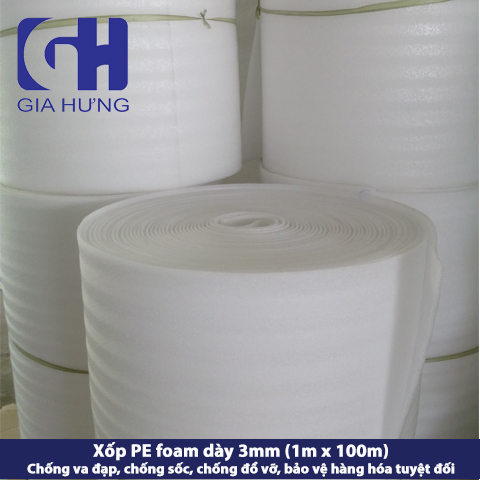 Công ty Gia Hưng sản xuất tất cả các loại xốp PE foam thường, màng xốp foam tráng nilon, mút xốp PE foam tráng bạc...với nhiều loại độ dày khác nhau từ 0,5mm đến 100mm. Sản phẩm xốp pe foam của Gia Hưng Plastic thường được làm thành dạng cuộn với khổ rộng 1m - 1,4m và các mức độ dài đa dạng từ 25m cho đến 600m.